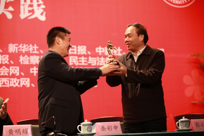 謝謝岳校長(zhǎng)。我代表中國(guó)法學(xué)會(huì)宣布第八屆中國(guó)法學(xué)青年論壇的承辦單位。由于此前的六屆舉辦得非常成功,不少科研單位以及實(shí)務(wù)部門都向我們提出了申請(qǐng)的愿望,為了使中國(guó)法學(xué)青年論壇不僅能走進(jìn)法學(xué)院,不僅能走進(jìn)法院,還能夠走進(jìn)檢察院,不僅能夠在北方、在東部、在中部,我們還希望中國(guó)法學(xué)青年論壇能夠走到南部,能夠走得更遠(yuǎn)。經(jīng)綜合考慮,我們?cè)谧罡呷嗣駲z察院領(lǐng)導(dǎo)的大力支持下,確定第八屆中國(guó)法學(xué)青年論壇由廣東省人民檢察院及珠海市人民檢察院承辦。下面舉行壇標(biāo)交接儀式,請(qǐng)西南政法大學(xué)岳彩申校長(zhǎng)與珠海市人民檢察院副檢察長(zhǎng)彭小明同志交接,請(qǐng)大家共同見證這一時(shí)刻。