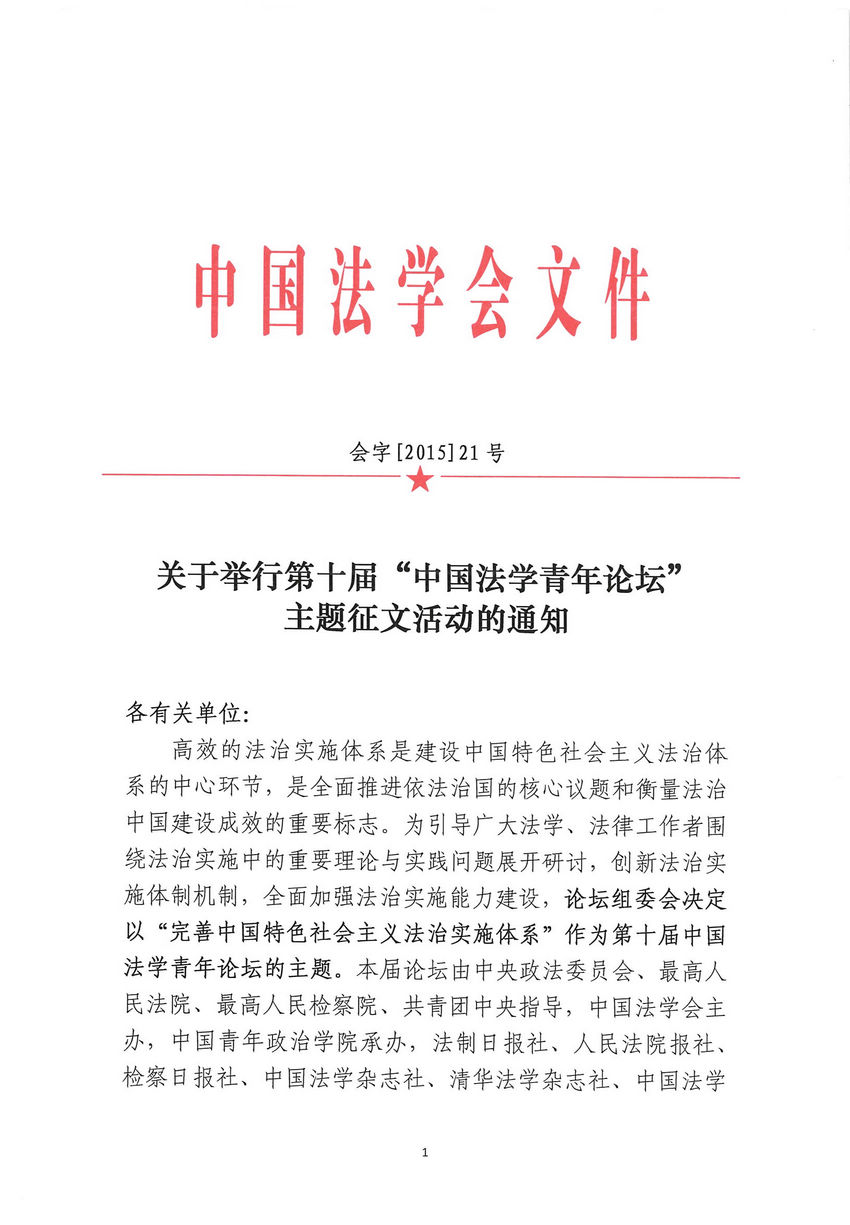 關(guān)于舉行第十屆“中國(guó)法學(xué)青年論壇”主題征文活動(dòng)的通知(word版)(點(diǎn)擊下載)
