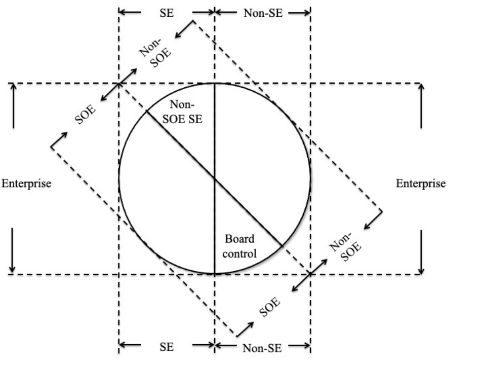 圖注:該圖由筆者根據CPTPP相關概念自行繪制;Enterprise=企業(yè);SE=國家企業(yè);Non-SE=非國家企業(yè)(私有企業(yè)) ;SOE=國有企業(yè);Non-SOE=非國有企業(yè);Non-SOE SE=非國有的國家企業(yè)(如國有參股企業(yè)或事業(yè)單位);Board control=政府有權任命過半數(shù)管理層的國有企業(yè)