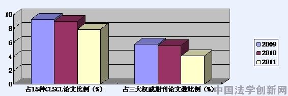 表一:2009到2011年國(guó)際法學(xué)在15種CLSCI發(fā)表論文情況統(tǒng)計(jì)表