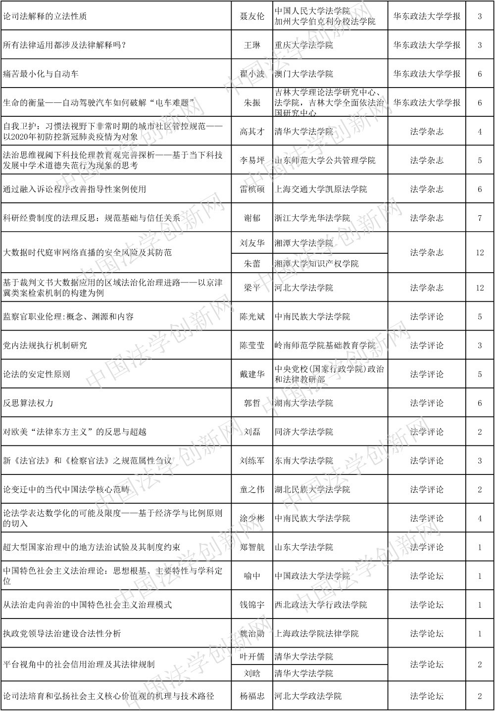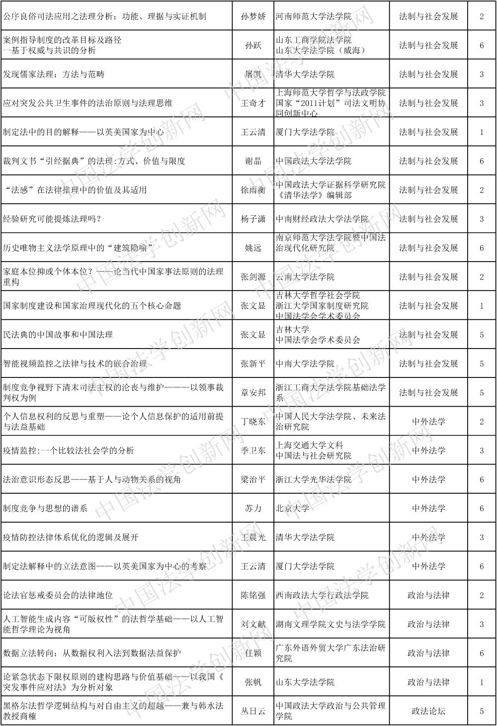 編者按:近日,中國法學(xué)創(chuàng)新網(wǎng)對2020年22種CLSCI來源期刊上發(fā)表的論文進(jìn)行了統(tǒng)計(jì)并根據(jù)學(xué)科分類。自今日起,本網(wǎng)將陸續(xù)推出相應(yīng)學(xué)科發(fā)文統(tǒng)計(jì),并向法學(xué)法律界同仁公開征求意見。如對論文分類有異議,請致電或發(fā)郵件至中國法學(xué)創(chuàng)新網(wǎng)。聯(lián)系人:侯老師,電話:010-66188522;電郵:zgfxcxw@163.com