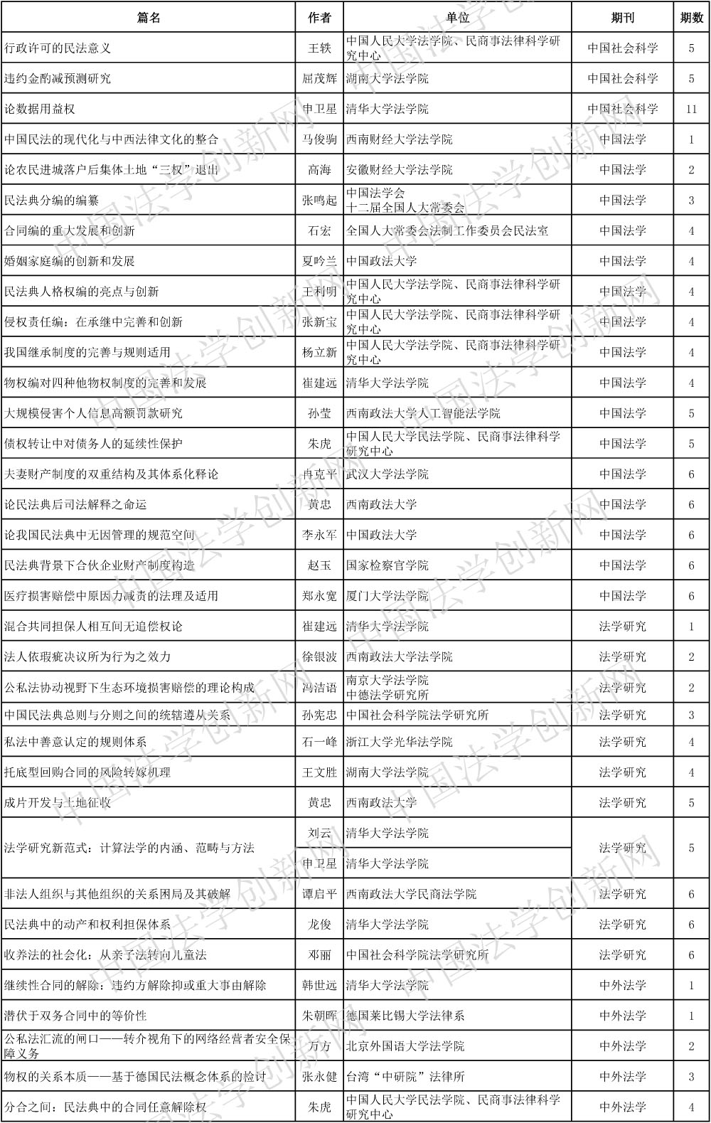 截至今日,除《中國(guó)刑事法雜志》第6期尚未出刊外,2020年22種CLSCI來(lái)源期刊共發(fā)表論文1931篇。今日推送民法學(xué),敬請(qǐng)廣大法學(xué)法律界同仁關(guān)注,并提出寶貴意見(jiàn)。