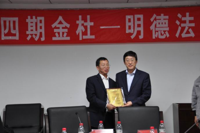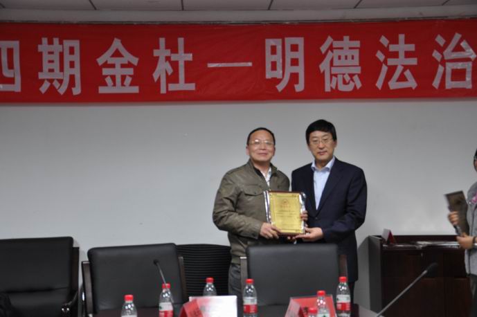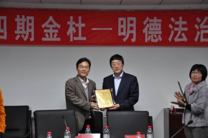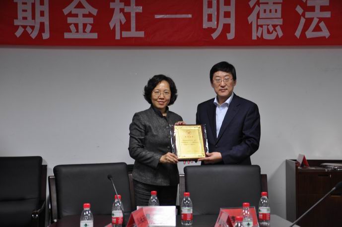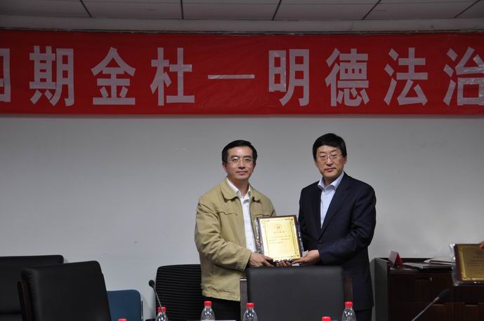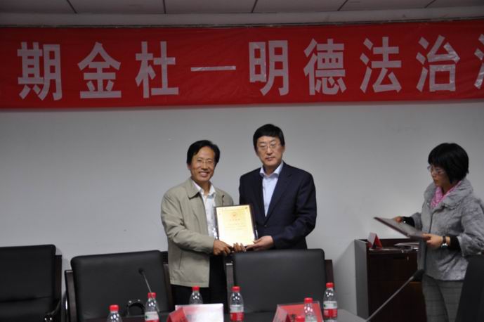 韓大元院長(zhǎng)向別濤副司長(zhǎng)頒發(fā)紀(jì)念證書(shū)