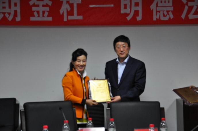 李仕春:各位親愛(ài)的觀眾,下面插播公益廣告。扈紀(jì)華主任長(zhǎng)期以來(lái)支持民事訴訟法學(xué)研究會(huì)的工作,對(duì)金杜明德法治沙龍給予了很大的扶持。第三期她如約而至,第四期她又放下手中的工作趕來(lái),沙龍有今天的局面是和她的支持是分不開(kāi)的。同時(shí),她是早年畢業(yè)于中國(guó)政法大學(xué)民事訴訟法學(xué)專(zhuān)業(yè)的法學(xué)碩士,理論和實(shí)踐兼具;诖,中國(guó)人民大學(xué)法學(xué)院決定聘請(qǐng)扈紀(jì)華主任為中國(guó)人民大學(xué)法治信息研究中心高級(jí)研究員。下面請(qǐng)韓大元院長(zhǎng)向扈主任頒發(fā)聘書(shū)。