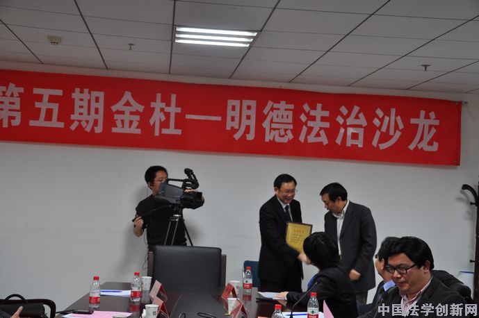 李仕春 剛才胡老師的精彩發(fā)言,不僅僅是總結(jié),還有很多創(chuàng)新。按照金杜—明德法治沙龍的程序,最后一個環(huán)節(jié)由胡院長給各位報告人頒發(fā)紀(jì)念牌。