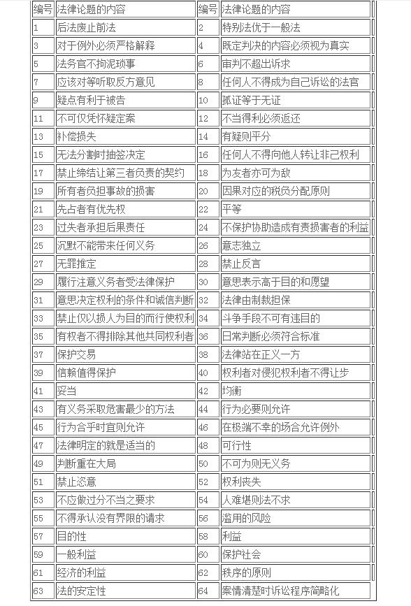 表1 舒托盧克法律論題學(xué)目錄