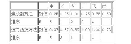 (46)波納西茨方法中,最大值(1)與最小值(0.37)的差值為0.63,連線數(shù)方法中最大值(1)與最小值(0.25)的差值為0.75。