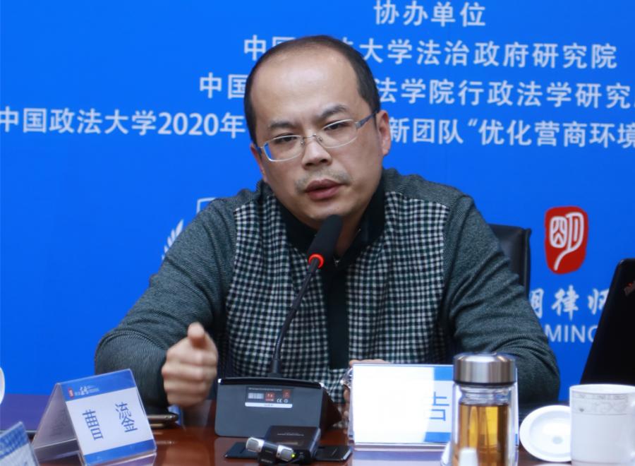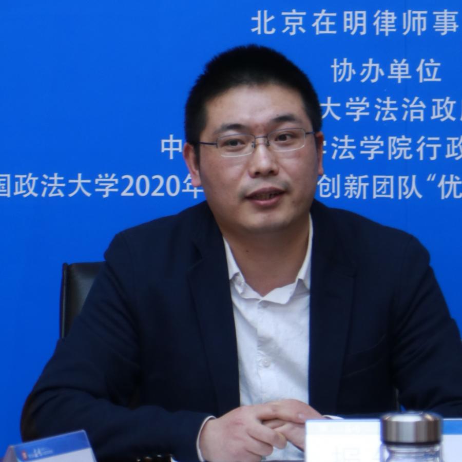 中國(guó)政法大學(xué)法學(xué)院行政法學(xué)研究所張冬陽(yáng)博士就“擬制行政審批”這一課題做了發(fā)言,中國(guó)政法大學(xué)法治政府研究院林華副教授和中國(guó)政法大學(xué)法學(xué)院行政法學(xué)研究所馬允副教授做了評(píng)議。發(fā)言人與評(píng)議人從《行政許可法》《藥品管理法》的具體法律條文出發(fā),探討了擬制行政審批制度的概念及其出現(xiàn)對(duì)提升審批效率、激發(fā)市場(chǎng)活力等方面可能產(chǎn)生的影響。