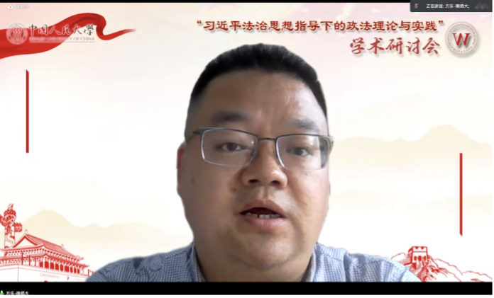 2022年11月12日上午,由中國(guó)人民大學(xué)法學(xué)院、中國(guó)人民大學(xué)法學(xué)理論國(guó)家重點(diǎn)學(xué)科、習(xí)近平法治思想研究中心共同主辦的“習(xí)近平法治思想指導(dǎo)下的政法理論與實(shí)踐”學(xué)術(shù)研討會(huì)在線上順利召開(kāi)。來(lái)自中國(guó)人民大學(xué)、北京大學(xué)、清華大學(xué)、復(fù)旦大學(xué)、上海交通大學(xué)、吉林大學(xué)、浙江大學(xué)、武漢大學(xué)、華東師范大學(xué)、南京師范大學(xué)、中國(guó)海洋大學(xué)、中央民族大學(xué)、中國(guó)政法大學(xué)、中南財(cái)經(jīng)政法大學(xué)、華東政法大學(xué)、西南政法大學(xué)、西北政法大學(xué)等高校的20余名學(xué)者參與了本次研討會(huì)。