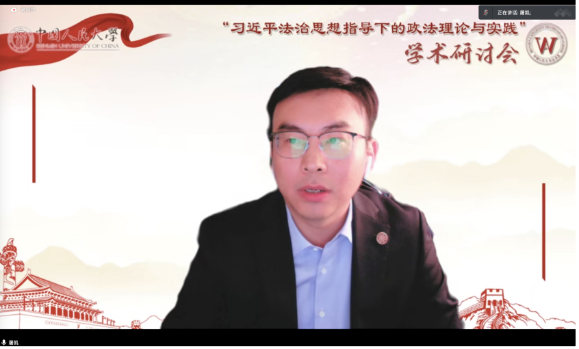中國(guó)人民大學(xué)法學(xué)院彭小龍副教授對(duì)本次會(huì)議進(jìn)行了總結(jié)。他對(duì)各位專(zhuān)家學(xué)者的精彩發(fā)言致以衷心感謝,并從對(duì) 習(xí)近平法治思想中的政法理論的學(xué)理解讀、政法的理論之維、政法理論的歷史之維、政法與黨內(nèi)法規(guī)等四個(gè)方面簡(jiǎn)要回顧了全天的學(xué)術(shù)討論,從中歸納出理論與實(shí)踐相結(jié)合、歷史與現(xiàn)實(shí)相關(guān)照、國(guó)內(nèi)與國(guó)際相關(guān)聯(lián)等三個(gè)顯著特征。彭小龍副教授認(rèn)為,本次會(huì)議同時(shí)也彰顯出今后政法研究的多重面向,可以圍繞政法本身的概念、范疇和命題,政法與其他法治范疇、制度和實(shí)踐的關(guān)系,政法的一般性和普遍性原理等不同層面,展開(kāi)更為立體化的研究。