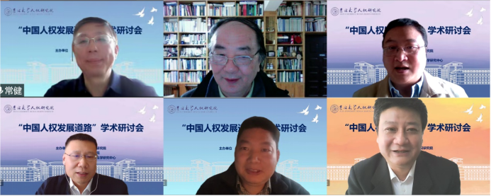 來自中國人權(quán)研究會、北京理工大學(xué)、東北師范大學(xué)、東南大學(xué)、吉林大學(xué)、南開大學(xué)、山東大學(xué)、武漢大學(xué)、西北政法大學(xué)、西南政法大學(xué)、新疆大學(xué)、中國人民大學(xué)、中國政法大學(xué)、中南大學(xué)等國內(nèi)高校、科研機構(gòu)、實務(wù)部門的二十余位專家學(xué)者圍繞著中國人權(quán)發(fā)展道路展開研討,近二百位觀眾在線旁聽了本次研討。