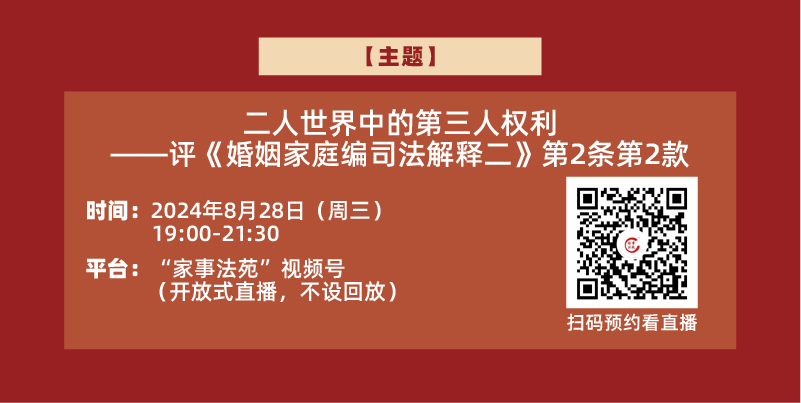 為進(jìn)一步加強(qiáng)婚姻家事法領(lǐng)域理論界與實(shí)務(wù)界的交流,中國人民大學(xué)法學(xué)院婚姻家庭法研究所、中國人民大學(xué)民商事法律科學(xué)研究中心自2020年5月起特創(chuàng)辦“家事法講壇”(線上)系列研討活動,邀請法律職業(yè)共同體各界嘉賓從多學(xué)科、多視角為民法典婚姻家庭編、繼承編的正確實(shí)施、立法完善以及家事審判改革及家事訴訟程序立法及完善建言獻(xiàn)策。