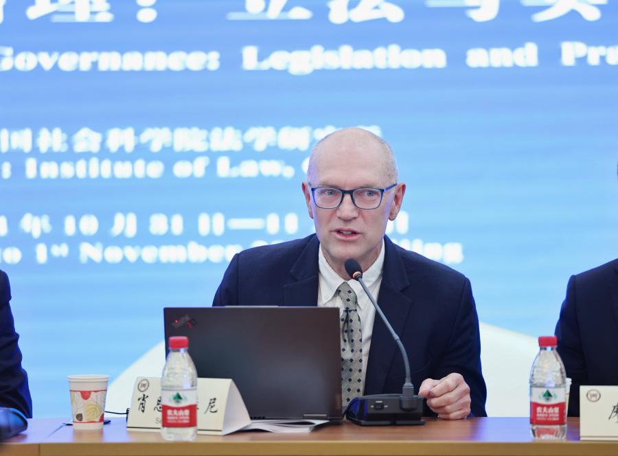 中國社會科學(xué)院法學(xué)研究所國際法研究所聯(lián)合黨委書記、法學(xué)研究所所長莫紀(jì)宏學(xué)部委員,澳大利亞墨爾本大學(xué)法學(xué)院夏榮教授(Sean Cooney),中國社會科學(xué)院國際合作局副局長廖凡研究員分別在論壇開幕式上致辭。開幕式由中國社會科學(xué)院法學(xué)研究所副所長謝增毅研究員主持。 莫紀(jì)宏指出,人工智能治理是國內(nèi)外共同關(guān)注的焦點,不同國家和地區(qū)都在推進(jìn)人工智能治理的立法和實踐。在這一過程中,應(yīng)當(dāng)堅持依法治理和以德治理相結(jié)合的原則,既要充分發(fā)揮法治對技術(shù)發(fā)展的促進(jìn)和規(guī)范作用,又要堅持道德對于技術(shù)的約束,構(gòu)建人工智能治理新秩序。希望與會者深入研討,為人工智能治理研究作出新貢獻(xiàn)。 夏榮強(qiáng)調(diào)了國際合作和交流的重要性。他表示,各國在人工智能治理中基于本國國情形成了許多不同的做法和機(jī)制,應(yīng)當(dāng)通過交流合作學(xué)習(xí)其他國家的有益經(jīng)驗,推動形成關(guān)于人工智能治理的國際共識。 廖凡指出,伴隨科技革命和產(chǎn)業(yè)革命的深入發(fā)展,技術(shù)創(chuàng)新進(jìn)入密集活躍期,人工智能技術(shù)成為國際關(guān)注的熱點和焦點問題。中國歷來高度重視人工智能的發(fā)展與治理,積極推進(jìn)人工智能國內(nèi)立法和國際治理合作。法學(xué)所近年來圍繞人工智能等問題積極開展理論研究、學(xué)科建設(shè)和國際交流,期待與會專家在本次論壇上充分交流、暢所欲言。 論壇第一單元主題為“人工智能治理模式與法治”,由廖凡主持。中國政法大學(xué)副校長時建中教授以“促進(jìn)人工智能發(fā)展的法治環(huán)境”為題發(fā)言。美國耶魯大學(xué)法學(xué)院蔡中曾中國研究中心陸凱研究員(Karman Lucero)以“人工智能與法律的限制”為題發(fā)言。美國麻省理工學(xué)院蓋布瑞勒·馬茲尼研究員(Gabriele Mazzini)以“歐盟的人工智能規(guī)制”為題發(fā)言。 論壇第二單元主題為“人工智能治理機(jī)制與治理協(xié)作”,由中國社會科學(xué)院法學(xué)研究所知識產(chǎn)權(quán)研究室主任管育鷹研究員主持。北京大學(xué)法學(xué)院教授、《中外法學(xué)》主編王錫鋅以“算法‘可信任’的機(jī)制建構(gòu)”為題發(fā)言。中國社會科學(xué)院法學(xué)研究所《環(huán)球法律評論》編輯部主任姚佳編審以“人工智能的數(shù)據(jù)利用制度:國際經(jīng)驗與中國發(fā)展”為題發(fā)言。美國斯坦福大學(xué)人工智能研究院政策研究主管安妮·卡洛琳·梅恩哈特研究員(Anne Caroline Meinhardt)和美國斯坦福大學(xué)網(wǎng)絡(luò)政策中心格雷厄姆·韋伯斯特研究員(Graham Webster)以“中美人工智能治理的協(xié)作方向”為題發(fā)言。 論壇第三單元主題為“人工智能立法與司法”,由中國社會科學(xué)院圖書館法學(xué)分館館長、《環(huán)球法律評論》副主編支振鋒研究員主持。清華大學(xué)法學(xué)院申衛(wèi)星教授以“人工智能立法的思路與重點”為題發(fā)言。英國劍橋大學(xué)法學(xué)院西蒙·迪肯教授(Simon Deakin)以“英國工業(yè)革命中司法語言的演變:一種計算方法”為題發(fā)言。德國馬克斯·普朗克比較私法和國際私法研究所本杰明·匹斯勒教授(Knut Benjamin Pißler)以“人工智能在法律數(shù)據(jù)庫中的應(yīng)用:以最高人民法院‘法信’數(shù)據(jù)庫為例”為題發(fā)言。德國馬克斯·普朗克比較私法和國際私法研究所卡莎瑞納·伊莎貝爾·施密特研究員(Katharina Isabel Schmidt)以“‘法官是人類嗎?’——從法律實證主義視角看法律與人工智能”為題發(fā)言。 論壇第四單元主題為“工作場所的人工智能使用與規(guī)制”,由北京大學(xué)法學(xué)院勞動法與社會保障法研究所所長葉靜漪教授主持。澳大利亞墨爾本大學(xué)法學(xué)院夏榮教授以“澳大利亞關(guān)于平臺工作的新法律”為題發(fā)言。中央財經(jīng)大學(xué)法學(xué)院沈建峰教授以“中國平臺用工的政策與治理思路”為題發(fā)言。波蘭華沙大學(xué)法律與行政學(xué)院副院長高彬承教授(Piotr Grzebyk)以“建立工作場所算法管理的通用標(biāo)準(zhǔn)——歐盟與中國視角”為題發(fā)言。匈牙利卡洛里·加斯帕新教大學(xué)法學(xué)院勞動和社會保障法系主任、匈牙利國家公共服務(wù)大學(xué)阿提拉·桑德·坤教授(Attila Sándor Kun)以“人工智能與工作場所——歐洲和匈牙利視角”為題發(fā)言。 論壇第五單元主題為“人工智能立法與全球治理”,由加拿大渥太華大學(xué)高級顧問焦杰教授主持。中國人民大學(xué)法學(xué)院副院長張龑教授以“走向‘逆向邏輯思維’時代的人工智能與法”為題發(fā)言。澳門大學(xué)法學(xué)院羅斯塔姆·紐維爾斯教授(Rostam Neuwirth)以“全球人工智能治理:制度和認(rèn)知的挑戰(zhàn)”為題發(fā)言。中國社會科學(xué)院法學(xué)研究所網(wǎng)絡(luò)與信息法研究室副主任周輝副研究員以“人工智能全球治理的格局、挑戰(zhàn)與完善”為題發(fā)言。 論壇第六單元主題為“人工智能治理與權(quán)利保護(hù)”,由中國社會科學(xué)院法學(xué)研究所《法學(xué)研究》副主編馮玨編審主持。中國社會科學(xu
