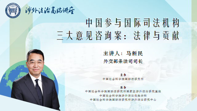 2025年1月15日,中國社會科學(xué)院國際法研究所涉外法治高端講座第五講在京舉行。外交部條法司司長馬新民以“中國參與國際司法機構(gòu)三大咨詢意見案:法律主張與貢獻”為題發(fā)表演講。