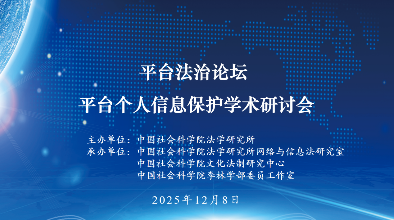 2025年12月8日,“平臺(tái)法治論壇 平臺(tái)個(gè)人信息保護(hù)學(xué)術(shù)研討會(huì)”在中國(guó)社會(huì)科學(xué)院法學(xué)研究所召開(kāi)。此次研討會(huì)由中國(guó)社會(huì)科學(xué)院法學(xué)研究所主辦、中國(guó)社會(huì)科學(xué)院法學(xué)研究所網(wǎng)絡(luò)與信息法研究室、中國(guó)社會(huì)科學(xué)院文化法制研究中心、中國(guó)社會(huì)科學(xué)院李林學(xué)部委員工作室承辦,來(lái)自中國(guó)社會(huì)科學(xué)院、北京大學(xué)、中國(guó)人民大學(xué)、中央財(cái)經(jīng)大學(xué)和中國(guó)移動(dòng)等單位的數(shù)十位專家學(xué)者參會(huì)研討。