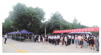 演練分為模擬實景演練和推演情境演練兩個類別,包括學(xué)生返校入校、學(xué)生異常情況處置、食堂就餐、隔離區(qū)學(xué)生管理服務(wù)、學(xué)生晨午晚檢、公共區(qū)域消殺、進入校內(nèi)公共場所及異常情況處置、開展全員核酸檢測8項具體演練內(nèi)容。對學(xué)生返校中、返校后可能出現(xiàn)的如健康碼異常、行程碼顯示有中高風(fēng)險地區(qū)旅居史、身體出現(xiàn)發(fā)熱等情況,以及食堂隔位就餐、隔離管理服務(wù)工作等進行了重點演練。