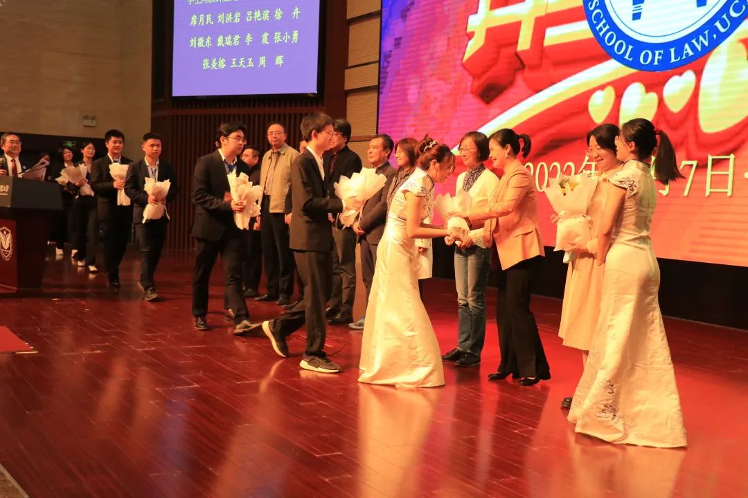 師生見面會步入尾聲,在《紅旗頌》的鋼琴聲中,同學(xué)們向教研室負(fù)責(zé)人和導(dǎo)師代表席月民教授、劉洪巖教授、呂艷濱教授、徐卉教授、劉敬東教授、戴瑞君教授、李霞副教授、王天玉副教授、張美榕副教授和周輝副教授獻(xiàn)花;同學(xué)們向班主任和輔導(dǎo)員程捷副教授、韓偉副教授、蔡睿博士、李廣德博士、劉燦華博士、于宜平老師和劉瑗珂老師獻(xiàn)花,同學(xué)們向特聘教授陳甦教授和田禾教授獻(xiàn)花。