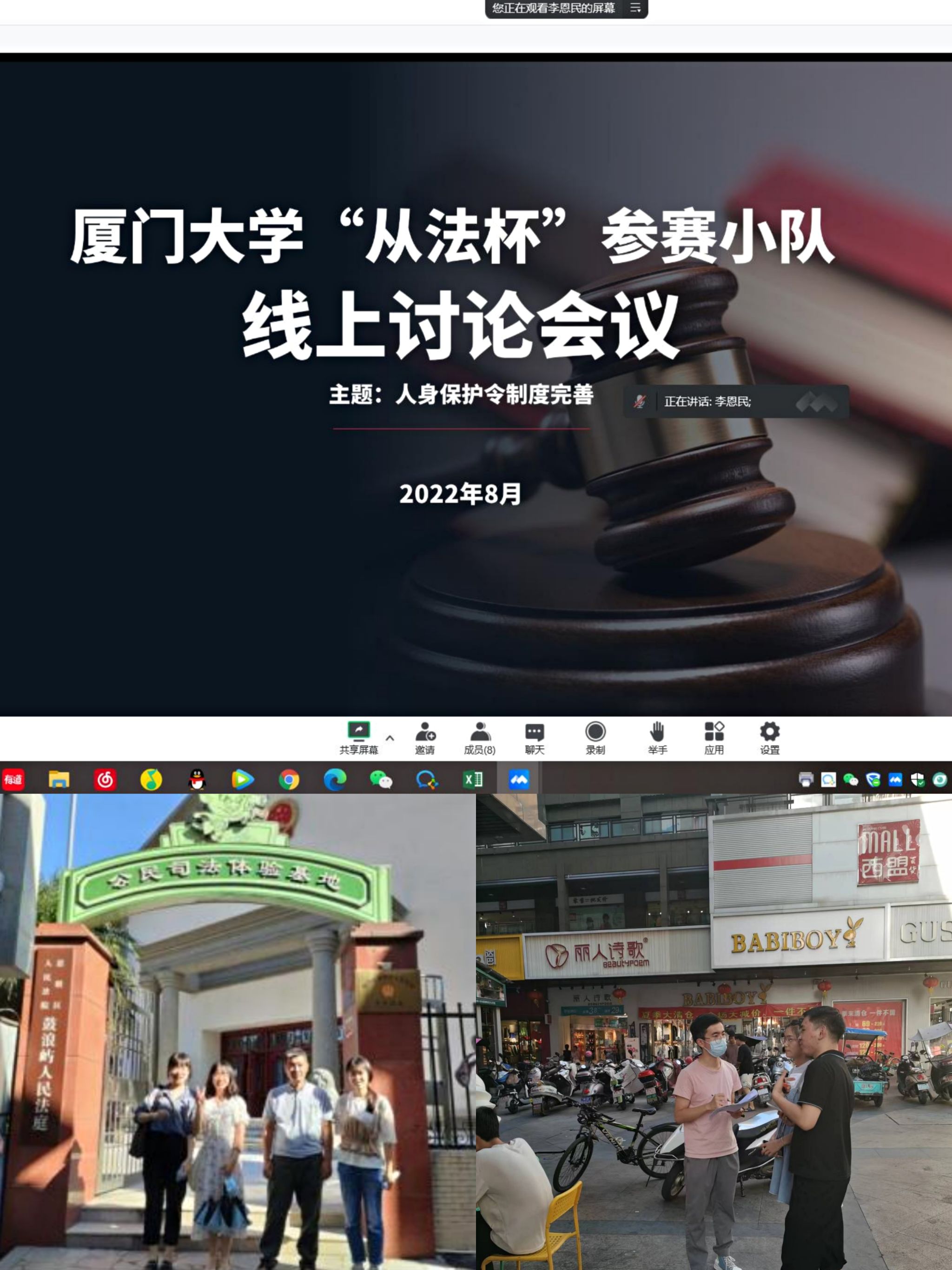 在六個(gè)月的奮戰(zhàn)中,同學(xué)們認(rèn)真?zhèn)滟、?yán)密策劃,多次與蔣月老師召開(kāi)線下、線上研討會(huì),溝通交流具體調(diào)研方案。在暑期,隊(duì)員們冒著炎炎烈日前往廈門市鼓浪嶼家事法庭、婦聯(lián)、公安等單位進(jìn)行走訪調(diào)研,并在社區(qū)針對(duì)群眾發(fā)放調(diào)研問(wèn)卷。經(jīng)過(guò)細(xì)致的籌劃、扎實(shí)的調(diào)研,調(diào)研隊(duì)最終形成了四萬(wàn)余字的調(diào)研報(bào)告,總結(jié)了調(diào)研中發(fā)現(xiàn)的問(wèn)題,提出了相應(yīng)的解決方案,為社會(huì)的反家庭暴力工作提供了最新的研究成果。