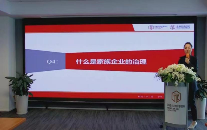 陜西永嘉信律師事務所高級合伙人唐亞妮律師就“如何構建家族企業(yè)治理與家族財富管理的持續(xù)平衡”介紹了家族財富管理與傳承的服務對象和服務內(nèi)容,通過多元化的財富構成和多元化的財富風險解釋了客戶為什么要關注家族財富保護與傳承,同時闡述了什么是家族企業(yè)的治理以及如何實現(xiàn)家族企業(yè)所有權與管理權的平衡問題。