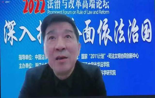 11月12日,以“深入推進全面依法治國”為主題的法治與改革高端論壇(2022)在杭州召開。中國法學會黨組成員、學術委員會主任張文顯,全國人大憲法與法律委員會副主任委員江必新出席論壇并作開幕致辭。中南財經政法大學國家治理學院教授、社會治理法學學科帶頭人、湖北法治發(fā)展戰(zhàn)略研究院院長徐漢明教授應邀線上出席并作主題發(fā)言。