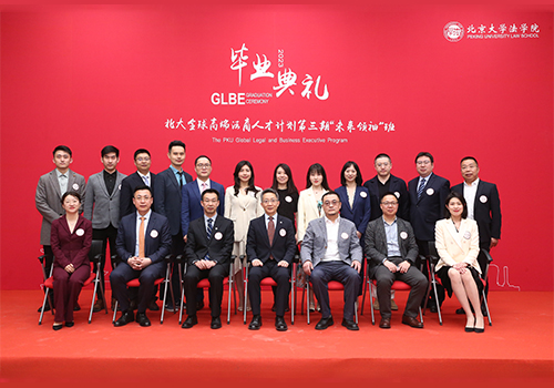 4月16日下午,北大全球高端法商人才計(jì)劃(The PKU Global Legal and Business Executive Program,以下簡(jiǎn)稱“GLBE”)第三期“未來領(lǐng)袖”班畢業(yè)典禮在北京大學(xué)法學(xué)院凱原樓報(bào)告廳隆重舉行。北京大學(xué)法學(xué)院院長(zhǎng)、黨委書記郭靂,黨委副書記楊曉雷,BOSS直聘創(chuàng)始人、董事長(zhǎng)兼CEO、北京大學(xué)法律系1989級(jí)校友趙鵬,北京中銀律師事務(wù)所管委會(huì)主席、北京大學(xué)法學(xué)院2002級(jí)校友閆鵬和等領(lǐng)導(dǎo)嘉賓出席畢業(yè)典禮。畢業(yè)典禮由楊曉雷副書記主持。