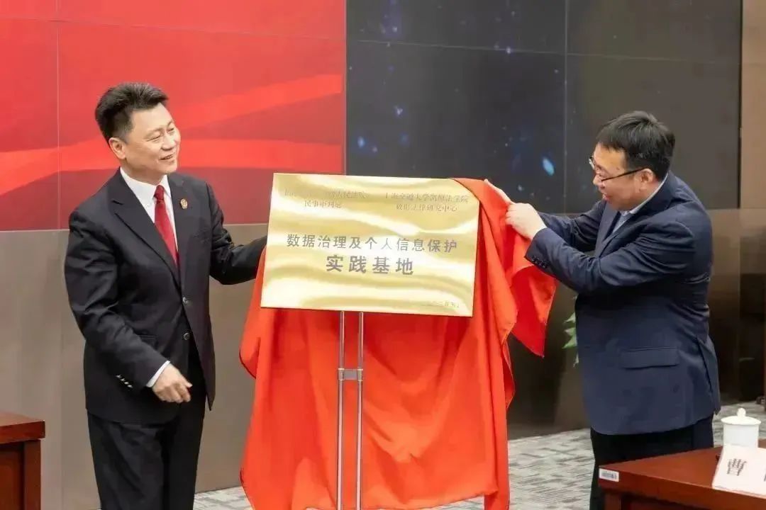 簽約后,孫軍副院長、彭誠信主任共同為“數(shù)據(jù)治理及個人信息保護(hù)實(shí)踐基地”揭牌。