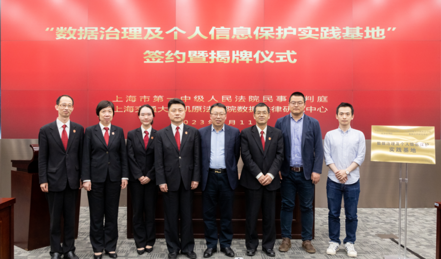 為深入學(xué)習(xí)貫徹習(xí)近平新時代中國特色社會主義思想,圍繞全市法院院長會提出的“政治建設(shè)引領(lǐng)、司法質(zhì)效為本、數(shù)字改革賦能”工作主線,緊扣新時代數(shù)據(jù)、個人信息、隱私保護(hù)等領(lǐng)域重大理論和司法實(shí)踐問題,經(jīng)友好協(xié)商,5月11日下午,上海市第一中級人民法院(以下簡稱上海一中院)民事審判庭與上海交通大學(xué)凱原法學(xué)院數(shù)據(jù)法律研究中心(以下簡稱交大凱原法學(xué)院數(shù)據(jù)法律研究中心)舉行“數(shù)據(jù)治理及個人信息保護(hù)實(shí)踐基地”簽約暨揭牌儀式。