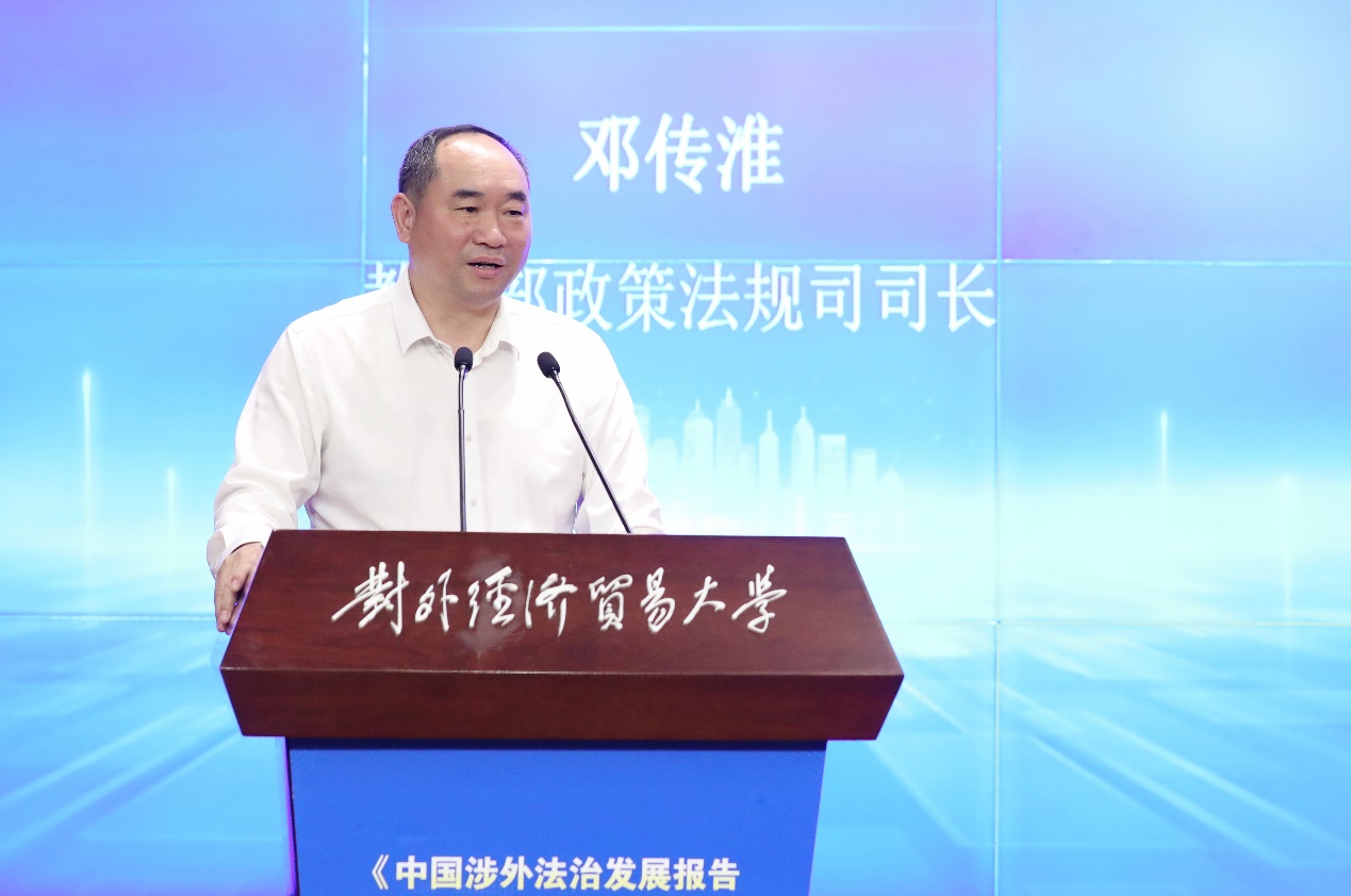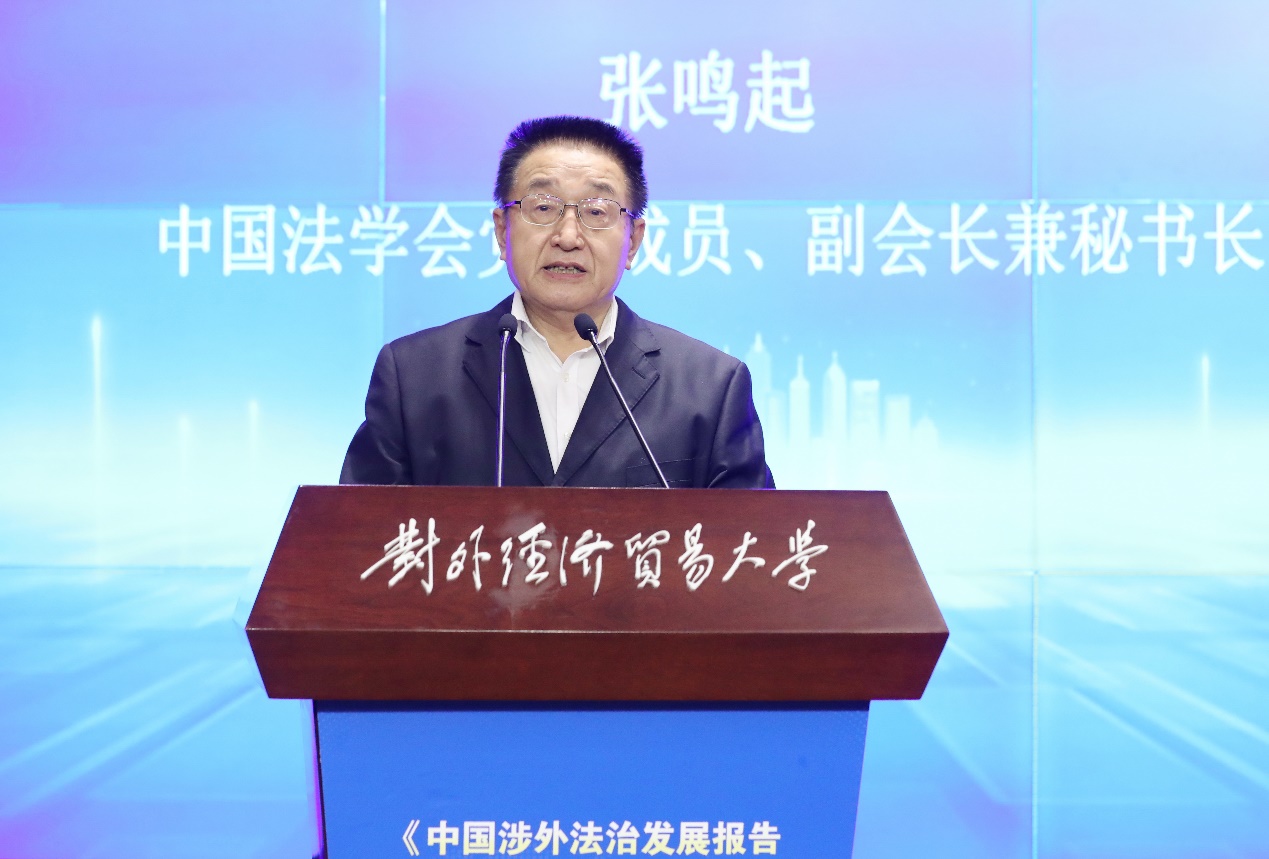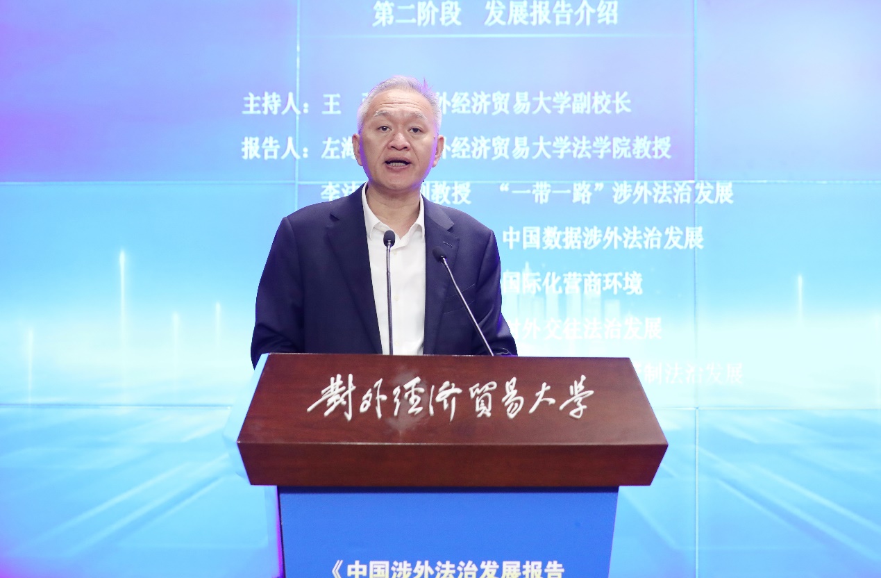 中國法學(xué)會(huì)黨組成員、副會(huì)長(zhǎng)兼秘書長(zhǎng)張鳴起指出,對(duì)外經(jīng)濟(jì)貿(mào)易大學(xué)設(shè)立涉外法治研究院是落實(shí)法治中國建設(shè)的重要舉措。涉外法治發(fā)展報(bào)告的發(fā)布,有助于深化涉外法治研究、宣傳涉外法治建設(shè)成就、客觀評(píng)價(jià)涉外法治建設(shè)存在的問題并提出建議。張鳴起副會(huì)長(zhǎng)同時(shí)提出,辦好涉外法治大講堂、建設(shè)“一帶一路”涉外法治基地等需要繼續(xù)堅(jiān)持問題導(dǎo)向,不斷完善理論框架,加強(qiáng)宣傳引導(dǎo),講好中國法治故事。