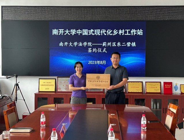 2023年8月11日,南開大學(xué)法學(xué)院在天津市薊州區(qū)楊津莊鎮(zhèn)、東二營鎮(zhèn)舉辦“南開大學(xué)中國式現(xiàn)代化鄉(xiāng)村工作站”授牌及簽約儀式。南開大學(xué)法學(xué)院黨委副書記、副院長周翠翠,南開大學(xué)法學(xué)院教授、博士生導(dǎo)師張洪波,薊州區(qū)司法局局長曹洪敏,薊州區(qū)楊津莊鎮(zhèn)黨委書記潘曉東,薊州區(qū)東二營鎮(zhèn)鎮(zhèn)長楊樹山,南開大學(xué)法學(xué)院團委書記周敬文,南開大學(xué)法學(xué)院2022級博士研究生、薊州區(qū)人民政府國有資產(chǎn)監(jiān)督管理委員會副主任(掛職)吳梅玲,以及薊州區(qū)司法局、楊津莊鎮(zhèn)、東二營鎮(zhèn)、楊津莊鎮(zhèn)富民村代表共同參加活動。