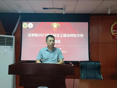 2023年8月31日中午,東南大學(xué)法學(xué)院2021級本科生工程法特色方向分流會于模擬法庭順利舉行。東南大學(xué)法學(xué)院院長歐陽本祺教授、東南大學(xué)法學(xué)實踐教育中心主任高歌副教授、法學(xué)院王瑋玲副教授、邢晨曦老師、常騰原老師、教務(wù)秘書王薇薇老師參加了本次會議。會議由東南大學(xué)法學(xué)院副院長單平基副教授主持。