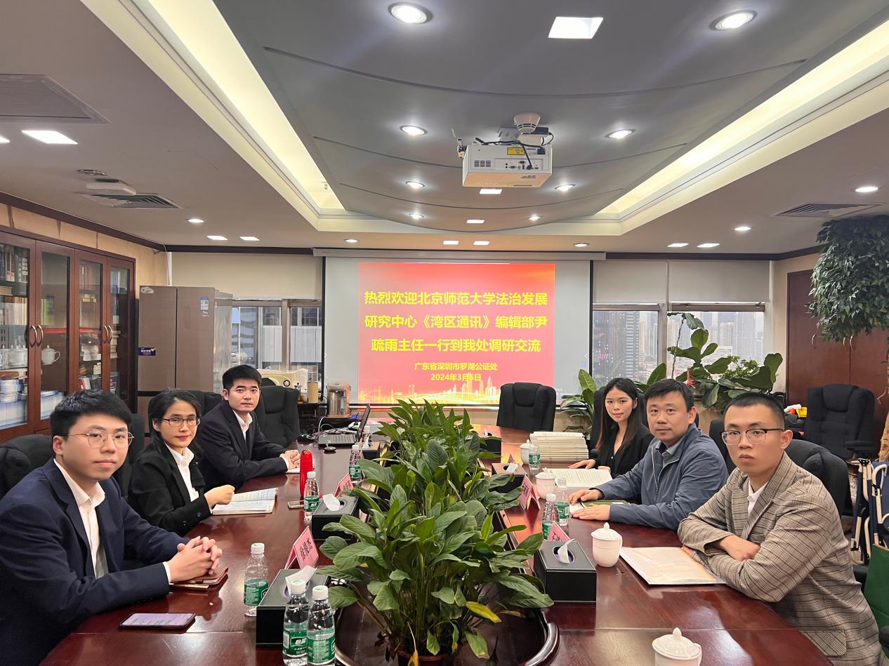 3月6日,北京師范大學(xué)法治發(fā)展研究中心《灣區(qū)通訊》編輯部主任尹疏雨一行到訪深圳市羅湖公證處,雙方圍繞如何完善預(yù)防性法律制度助力社會(huì)治理進(jìn)行了座談交流。