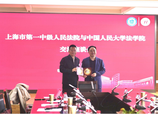 交流座談結(jié)束后,上海一中院院長吳金水與人大法學(xué)院院長黃文藝教授代表雙方互贈(zèng)禮物。