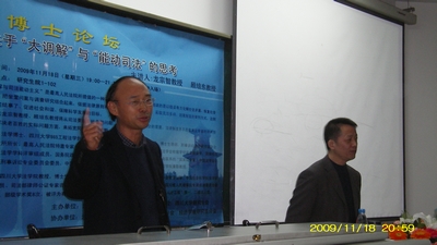 論壇上,就本期論壇的主題,兩位主持人從各自的專業(yè)研究領(lǐng)域展開了頗有深度的闡述。兩位教授各具個人風(fēng)格的論述,不僅啟迪了對“大調(diào)解”和“能動司法”的思考角度,也以各自的研究成果和體會給為與會師生提供了深入思考的具體落腳點。