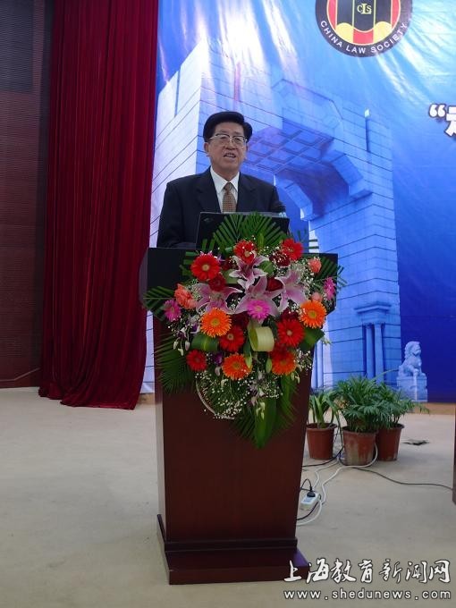 中國法學(xué)會會長韓杼濱在開幕式上致辭。 徐佳晨/攝