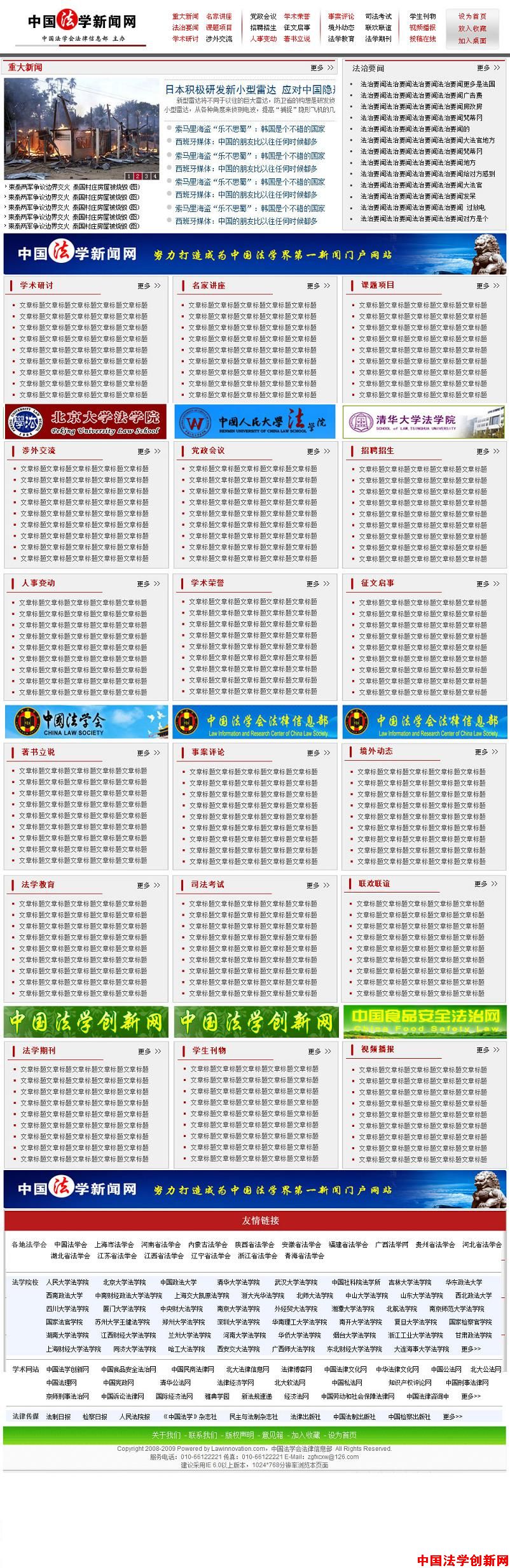 為了更好地為各法學(xué)院校、科研機(jī)構(gòu)和廣大師生服務(wù),傳播法學(xué)研究和法學(xué)教育信息,展示法學(xué)創(chuàng)新成果,交流辦學(xué)和治學(xué)經(jīng)驗(yàn),重現(xiàn)法學(xué)共同體精彩生活,我部決定創(chuàng)辦“中國法學(xué)新聞網(wǎng)”,并努力打造成為我國法學(xué)界第一新聞門戶網(wǎng)站。迄今為止,我部已經(jīng)成功注冊了該網(wǎng)站的英文域名:www.lawnews.org.cn,初步確定了欄目,完成了首頁的版面設(shè)計(jì)。