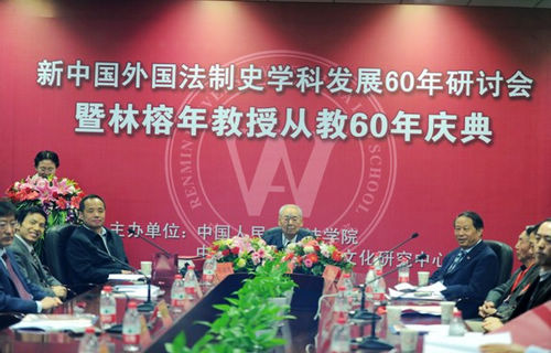在這春天美麗難忘的日子里,“新中國(guó)外國(guó)法制史學(xué)科發(fā)展60年研討會(huì)暨林榕年教授從教60年慶典”于2011年4月9日在中國(guó)人民大學(xué)匯賢大廈401會(huì)議室隆重舉行。來(lái)自全國(guó)外國(guó)法制史研究會(huì)的會(huì)長(zhǎng)、副會(huì)長(zhǎng)以及常務(wù)理事,北京大學(xué)、清華大學(xué)、華東政法大學(xué)、中國(guó)政法大學(xué)、西北政法大學(xué)、復(fù)旦大學(xué)、中南財(cái)經(jīng)政法大學(xué)、廈門(mén)大學(xué)、湘潭大學(xué)、華中科技大學(xué)等全國(guó)高校的專(zhuān)家學(xué)者以及林榕年教授的歷屆學(xué)生等近百人參加了會(huì)議。新華社、人民日?qǐng)?bào)等多家新聞媒體到現(xiàn)場(chǎng)報(bào)導(dǎo)本次會(huì)議。
