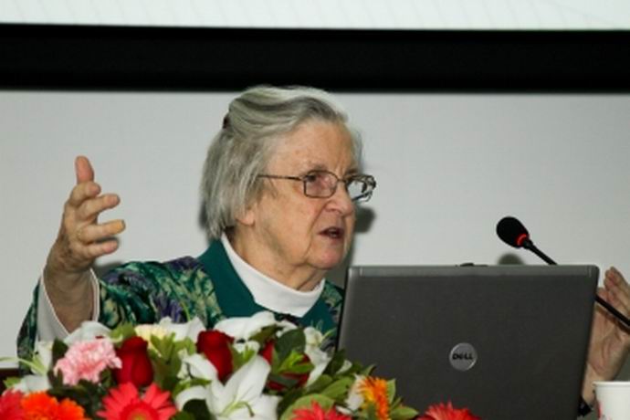 2011年5月10日上午,美國(guó)印第安納大學(xué)(布魯明頓)政治學(xué)教授、2009年諾貝爾經(jīng)濟(jì)學(xué)獎(jiǎng)得主埃莉諾·奧斯特羅姆(Elinor Ostrom)來(lái)中國(guó)政法大學(xué)昌平校區(qū),作題為“共濟(jì)共善:自治、多中心與發(fā)展”的講座(Cooperating for Public Good)。