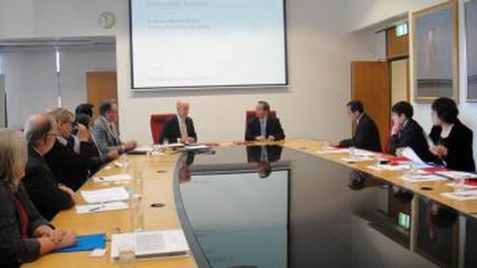 5月20日下午,代表團(tuán)訪問了昆士蘭大學(xué)。逯高清副校長(zhǎng)(Max Lu)、法學(xué)院院長(zhǎng)格蘭薩姆(Ross Grantham)、研究生部主任戴維森(Alan Davidson)、 J.D項(xiàng)目主任布萊克(Ann Black)、國際關(guān)系部主管陳健榮博士以及商學(xué)、經(jīng)濟(jì)學(xué)與法科學(xué)院副院長(zhǎng)布萊爾斯福德(Tim Brailsford)、政治學(xué)、政府學(xué)與國際關(guān)系學(xué)院院長(zhǎng)接待了代表團(tuán)。黃進(jìn)表示,中國政法大學(xué)非常重視與昆士蘭大學(xué)這樣世界高水平大學(xué)的合作與交流,希望籍此訪問之機(jī)建立兩校交流合作關(guān)系,開展師生、學(xué)科間的實(shí)質(zhì)合作。正式會(huì)談結(jié)束后,代表團(tuán)又分別與法學(xué)院、政治學(xué)、政府學(xué)與國際關(guān)系學(xué)院就今后合作細(xì)節(jié)進(jìn)行了工作磋商。初步與法學(xué)院、政治、政府學(xué)與國際關(guān)系學(xué)院就中澳法律研究中心、本科生交換、碩士生交換、接收我校公派研究生、教師交換等領(lǐng)域的合作達(dá)成一致。