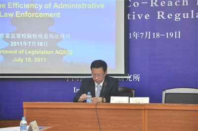 2011年7月18日,“中歐比較執(zhí)法制度(與食品安全)國際研討會(huì)”在法學(xué)所新會(huì)議室舉行。研討會(huì)由中國社會(huì)科學(xué)院法學(xué)所、英國倫敦政治經(jīng)濟(jì)學(xué)院、荷蘭阿姆斯特丹大學(xué)中國法研究中心聯(lián)合舉辦,全部用英文進(jìn)行。來自國家質(zhì)檢總局、國家藥監(jiān)局、北京市藥品監(jiān)督局、上海市食品藥品監(jiān)督所、浙江大學(xué)法學(xué)院、南開大學(xué)法學(xué)院、中山大學(xué)、上海政法學(xué)院、西北政法大學(xué)、國家行政學(xué)院、北京郵電大學(xué)、天津財(cái)經(jīng)大學(xué)、中國社會(huì)科學(xué)院法學(xué)所以及英國商業(yè)創(chuàng)新與技能部、荷蘭司法部、英國倫敦經(jīng)濟(jì)政治學(xué)院、荷蘭阿姆斯特丹大學(xué)的中外專家30余人參加會(huì)議。法學(xué)所憲法行政法室主任周漢華研究員主持開幕式,國家質(zhì)檢總局法規(guī)司司長(zhǎng)劉兆彬、國家藥監(jiān)局食品安全監(jiān)管司司長(zhǎng)徐景和作主旨演講,其他專家分別在各單元發(fā)表精彩報(bào)告(見議程)。