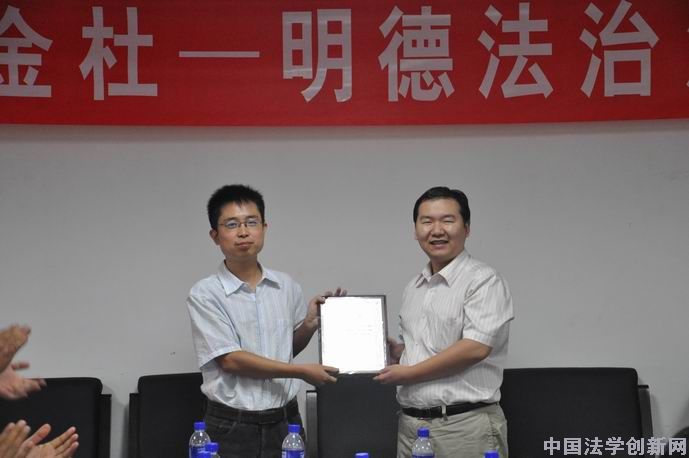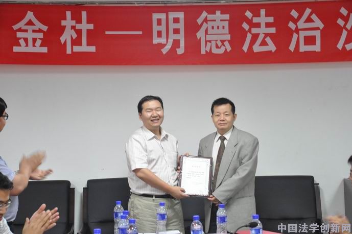 討論一直持續(xù)到晚上六點(diǎn)多。胡錦光教授宣布本期沙龍取得圓滿成功,中國人民大學(xué)法治信息研究中心主任、中國法學(xué)會(huì)法律信息部主任李仕春教授代表主辦單位向各位報(bào)告人、評論人和參與嘉賓表示感謝。隨后,李仕春教授向王鍇副教授頒發(fā)了“金杜—明德法治沙龍主報(bào)告人紀(jì)念證書”,王鍇副教授向任進(jìn)教授、李忠夏副教授、常安副教授、朱世海副教授頒發(fā)了“金杜—明德法治沙龍報(bào)告人紀(jì)念證書”(本沙龍各期報(bào)告人均由該期主報(bào)告人邀請確定,并由主報(bào)告人向各報(bào)告人頒發(fā)紀(jì)念證書),本期沙龍落下帷幕。