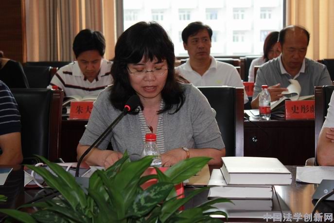揭幕與贈(zèng)送儀式后,會(huì)議進(jìn)入致辭和發(fā)言階段。中國法學(xué)會(huì)黨組書記、常務(wù)副會(huì)長劉飏同志對(duì)陳桂明教授的一生和文選給予了高度的評(píng)價(jià)。她說,這部法學(xué)文選是匯聚了桂明同志理想、使命和責(zé)任的傳世之作。文選收集的六十余篇法學(xué)論文充分展示了桂明同志的為中國法學(xué)事業(yè)殫精竭慮、上下求索的敬業(yè)態(tài)度。多種角色集于一身的桂明同志,在繁忙工作之余,仍能夠嘔心瀝血、筆耕不輟,繼立功、立德之后,又完成了立言的不朽事業(yè)。文選的面世是對(duì)桂明本人最好的告慰,也是對(duì)家屬的莫大安慰。