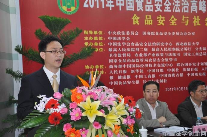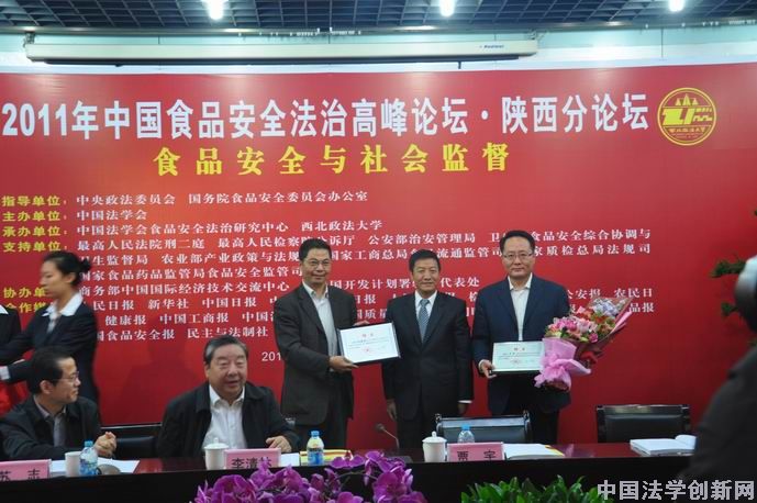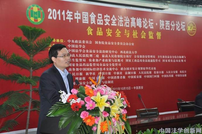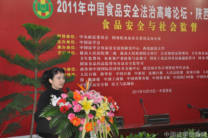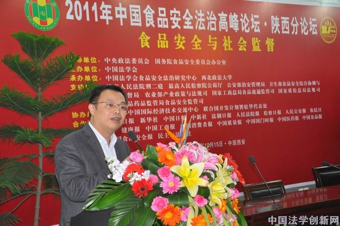 10月15日,“2011年中國(guó)食品安全法治高峰論壇·陜西分論壇” 在歷史悠久、文化厚重、滿(mǎn)城飄香的古城西安隆重舉行。論壇主題為“食品安全與社會(huì)監(jiān)督”。論壇由中國(guó)法學(xué)會(huì)主辦,指導(dǎo)單位為中央政法委員會(huì)、國(guó)務(wù)院食品安全委員會(huì)辦公室;最高人民法院刑事審判第二庭、最高人民檢察院公訴廳、公安部治安管理局、農(nóng)業(yè)部產(chǎn)業(yè)政策與法規(guī)司、衛(wèi)生部食品安全綜合協(xié)調(diào)與衛(wèi)生監(jiān)督局、國(guó)家工商行政管理總局食品流通監(jiān)管司、國(guó)家質(zhì)量監(jiān)督檢驗(yàn)檢疫總局法規(guī)司、國(guó)家食品藥品監(jiān)督管理局食品安全監(jiān)管司等中央相關(guān)部門(mén)作為支持單位;中國(guó)法學(xué)會(huì)食品安全法治研究中心、西北政法大學(xué)承辦;商務(wù)部中國(guó)國(guó)際經(jīng)濟(jì)技術(shù)交流中心、聯(lián)合國(guó)開(kāi)發(fā)計(jì)劃署駐華代表處協(xié)辦。中國(guó)法學(xué)會(huì)黨組成員、副會(huì)長(zhǎng)李清林同志出席論壇并講話(huà)。來(lái)自國(guó)務(wù)院食安辦、國(guó)務(wù)院法制辦、全國(guó)政協(xié)社法委、農(nóng)業(yè)部、衛(wèi)生部、國(guó)家工商總局、國(guó)家質(zhì)檢總局、國(guó)家食藥局、國(guó)家行政學(xué)院等中央單位和各省食品安全委員會(huì)、重慶市公安局的負(fù)責(zé)同志,以及來(lái)自全國(guó)各高校和科研機(jī)構(gòu)的專(zhuān)家學(xué)者共近200人參加了會(huì)議。人民日?qǐng)?bào)、新華社、中國(guó)日?qǐng)?bào)、中新社、法制日?qǐng)?bào)、人民法院報(bào)、檢察日?qǐng)?bào)、健康報(bào) 中國(guó)工商報(bào)、中國(guó)消費(fèi)者報(bào)、中國(guó)質(zhì)量報(bào)、中國(guó)國(guó)門(mén)時(shí)報(bào)、中國(guó)醫(yī)藥報(bào)、中國(guó)食品報(bào)、中國(guó)食品安全報(bào)、民主與法制社等中央主流媒體的記者到會(huì)采訪(fǎng)報(bào)道?梢哉f(shuō)盛況空前,熱烈非凡。