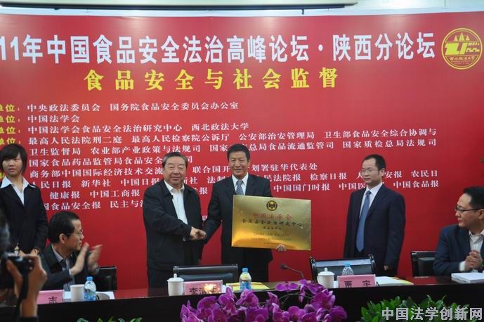 李清林副會(huì)長(zhǎng)向賈 宇校長(zhǎng)授予“中國(guó)法學(xué)會(huì)食品安全法治研究中心西安分中心”牌匾