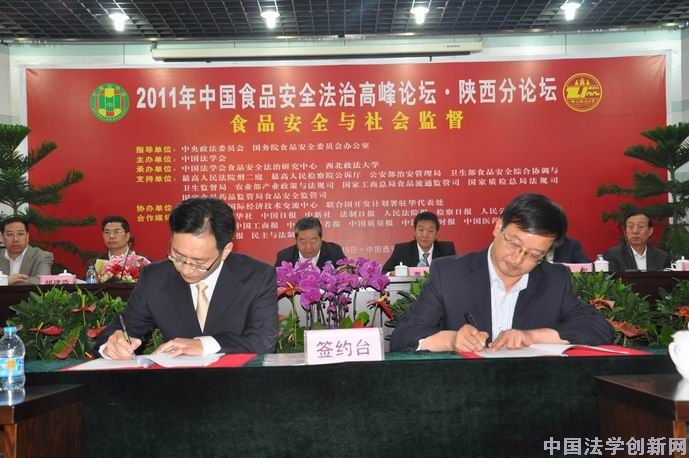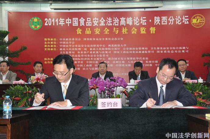 王偉國(guó)處長(zhǎng)代表中國(guó)法學(xué)會(huì)食品安全法治研究中心與商洛市鎮(zhèn)安縣劉文革副縣長(zhǎng)簽訂“食品安全有獎(jiǎng)舉報(bào)制度規(guī)范化試點(diǎn)”合作協(xié)議