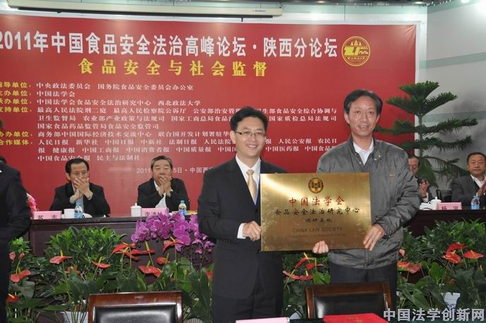 第二個(gè)環(huán)節(jié)是舉行中國(guó)法學(xué)會(huì)食品安全法治研究中心西安分中心設(shè)立儀式。