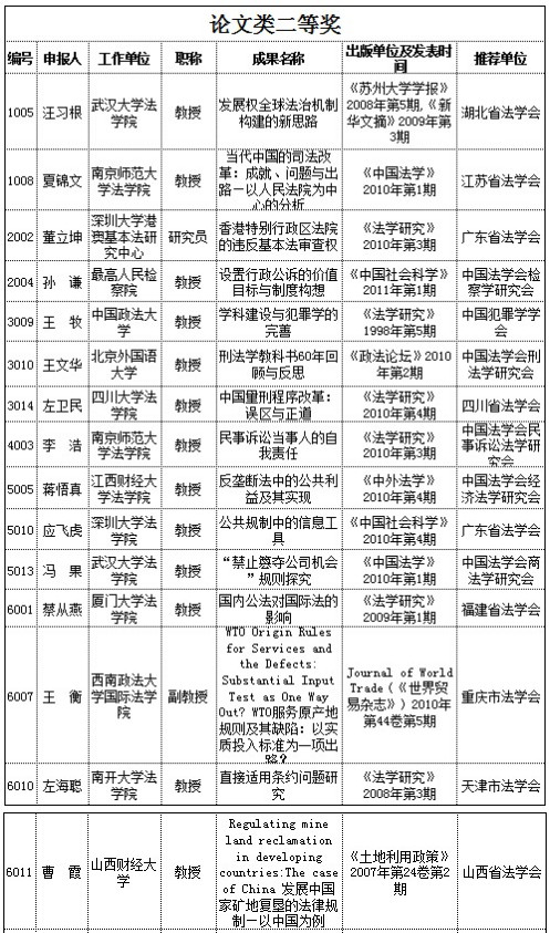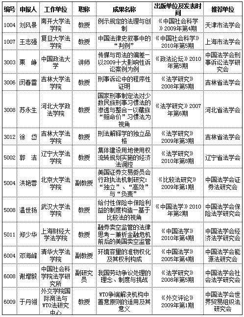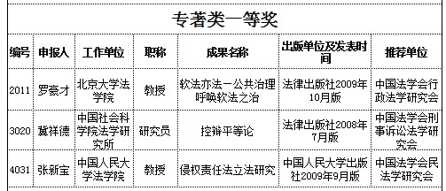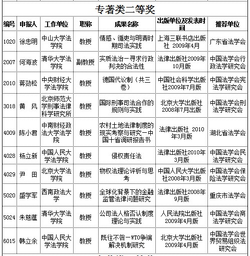 第二屆“中國法學(xué)優(yōu)秀成果獎(jiǎng)”獲獎(jiǎng)建議名單