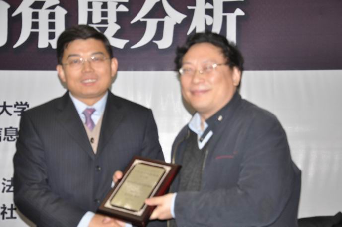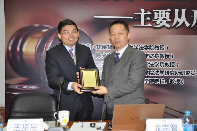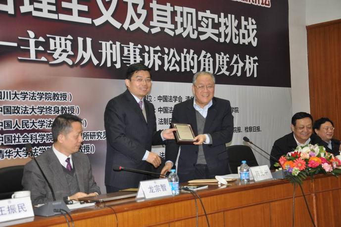 王振民院長(zhǎng)為龍宗智教授頒發(fā)演講紀(jì)念牌