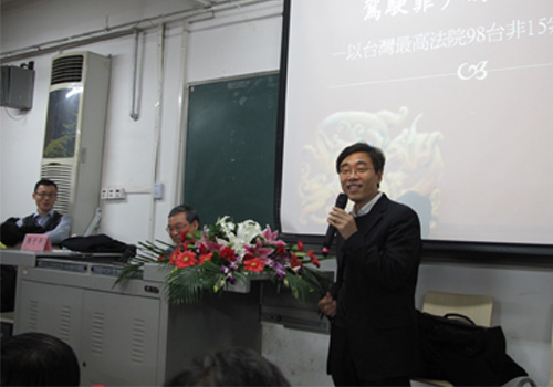 2011年12月13日晚上六點(diǎn)半,由北京大學(xué)“楊春洗法學(xué)教育與研究基金”資助,北京大學(xué)法學(xué)院、清華大學(xué)法學(xué)院、中國(guó)人民大學(xué)法學(xué)院和中國(guó)政法大學(xué)刑事司法學(xué)院四校聯(lián)袂主辦的“當(dāng)代刑法思潮論壇”系列活動(dòng)第八場(chǎng),在中國(guó)政法大學(xué)主教學(xué)樓108教室隆重舉行。本次論壇主題為“論酒醉駕車罪的爭(zhēng)議問(wèn)題——以我國(guó)臺(tái)灣地區(qū)“最高法院”98年臺(tái)非15號(hào)判決為例”,由臺(tái)灣高雄大學(xué)法律系陳子平教授主講。論壇由中國(guó)政法大學(xué)刑事司法學(xué)院曲新久教授主持,中國(guó)人民大學(xué)馮軍教授、中國(guó)人民大學(xué)劉明祥教授、中國(guó)政法大學(xué)阮齊林教授為主點(diǎn)評(píng)人,北京大學(xué)張文教授、陳興良教授、梁根林教授、江溯博士、清華大學(xué)法學(xué)院張明楷教授、中國(guó)人民大學(xué)付立慶副教授作為嘉賓出席了此次論壇。同時(shí),此次論壇吸引了來(lái)自四個(gè)院校的三百多名學(xué)生來(lái)到現(xiàn)場(chǎng)聆聽(tīng)。