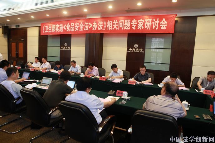 6月12日,《衛(wèi)生部實施<食品安全法>辦法》相關問題專家研討會在北京中苑賓館順利舉行。衛(wèi)生部食品安全綜合協(xié)調(diào)與衛(wèi)生監(jiān)督局陳 銳副局長、何 翔副局長,衛(wèi)生部政策法規(guī)司趙 寧副司長,以及衛(wèi)生部衛(wèi)生監(jiān)督中心、國家食品安全風險評估中心、中國法學會食品安全法治研究中心、中國食品工業(yè)協(xié)會、中國食品科學技術學會、北京市衛(wèi)生局法監(jiān)處、遼寧省衛(wèi)生監(jiān)督所、廣東省疾病預防控制中心等有關部門的負責同志,北京大學法學院副院長沈 巋教授、清華大學法學院副院長余凌云教授、上海交通大學凱原法學院朱 芒教授、最高人民法院立案二庭審判長甘 雯博士、中國法學會食品安全法治研究中心特聘研究員張興祥博士,實施辦法執(zhí)筆人中央財經(jīng)大學法學院高秦偉教授、北京師范大學法學院胡俊宏博士等共30余人參加了研討會。研討會由中國法學會法律信息部主任兼中國法學會食品安全法治研究中心主任李仕春、衛(wèi)生部食品安全綜合協(xié)調(diào)與衛(wèi)生監(jiān)督局副局長陳 銳共同主持。
