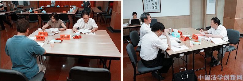 分組評(píng)審分為四個(gè)組進(jìn)行,各組均由3位專(zhuān)家組成。每一組負(fù)責(zé)1—2個(gè)專(zhuān)題,論文數(shù)都在49—58篇之間。每一組在各自打分和充分討論的基礎(chǔ)上提出一定數(shù)額的推薦一二三等獎(jiǎng)的獲獎(jiǎng)?wù)撐,最終的獲獎(jiǎng)?wù)撐膶⒃谶@些推薦論文中產(chǎn)生。因此,這個(gè)環(huán)節(jié)是終評(píng)活動(dòng)的關(guān)鍵環(huán)節(jié)。每一位專(zhuān)家都盡心盡責(zé),審讀認(rèn)真,討論熱烈。其中,李林教授曾擔(dān)任《中國(guó)社會(huì)科學(xué)》副總編輯,張新寶教授是《中國(guó)法學(xué)》總編輯、《法學(xué)研究》前社長(zhǎng),王保樹(shù)教授曾經(jīng)是《法學(xué)研究》主編,張志銘教授、王敏遠(yuǎn)教授都擔(dān)任過(guò)《法學(xué)研究》的學(xué)科編輯,張志銘教授還先后主持過(guò)《國(guó)家檢察官學(xué)院學(xué)報(bào)》、《法學(xué)家》,高鴻鈞教授曾為《比較法研究》主編。評(píng)審專(zhuān)家卓越的學(xué)術(shù)水準(zhǔn)和超群的學(xué)術(shù)鑒賞力,保證了評(píng)審得以高質(zhì)高效地進(jìn)行。分組評(píng)審環(huán)節(jié)從2:30開(kāi)始到將近4:00才結(jié)束。